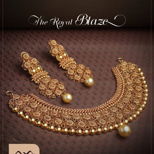 Set of Gold Jewellery Necklace Earrings – With Cubic Zircon