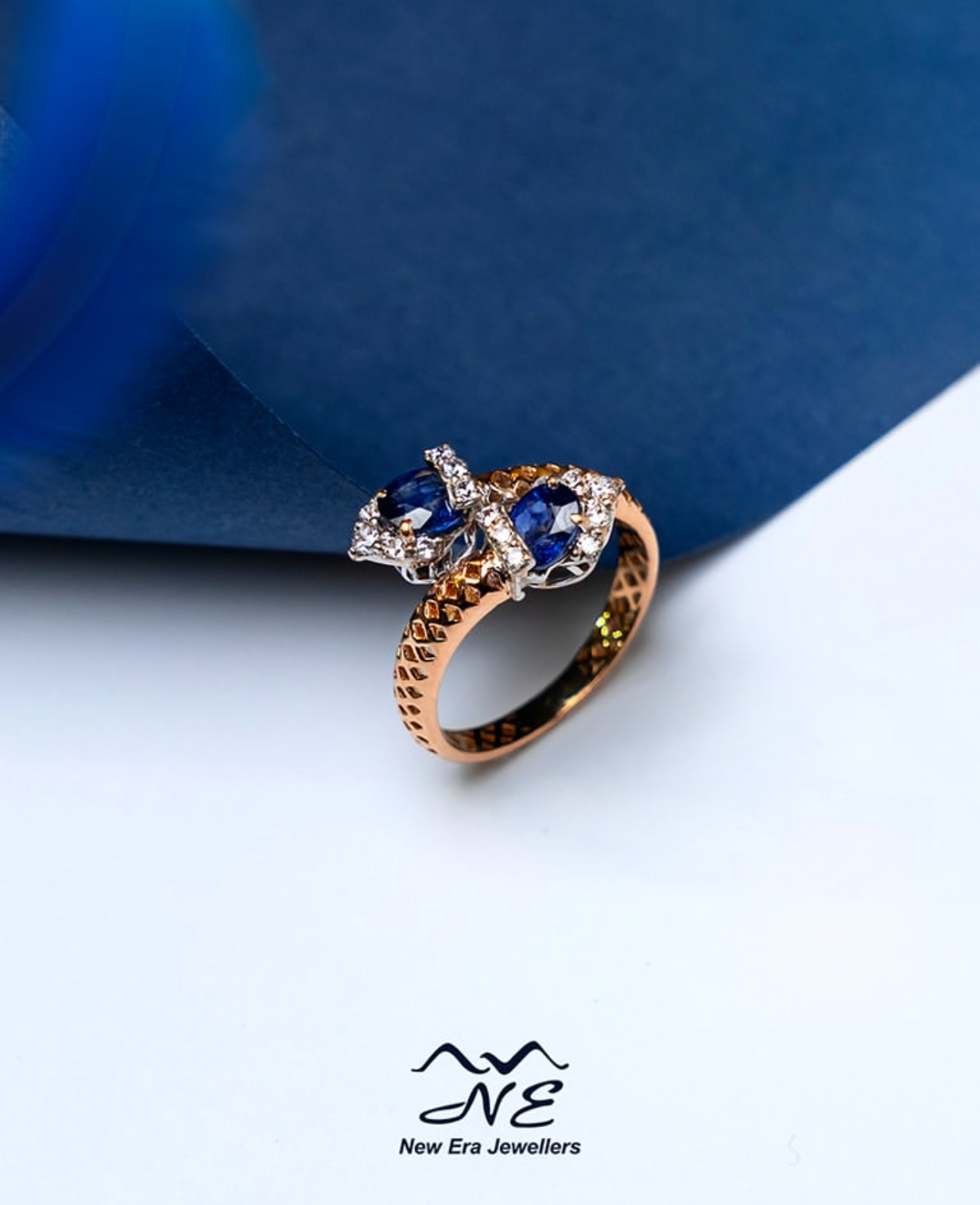 Elevate your elegance with this captivating sapphire ring, masterfully crafted for the modern connoisseur. Featuring two deep royal blue oval-cut sapphires at its heart, this piece is gracefully intertwined with delicate diamond accents, offering a perfect balance of sparkle and sophistication.